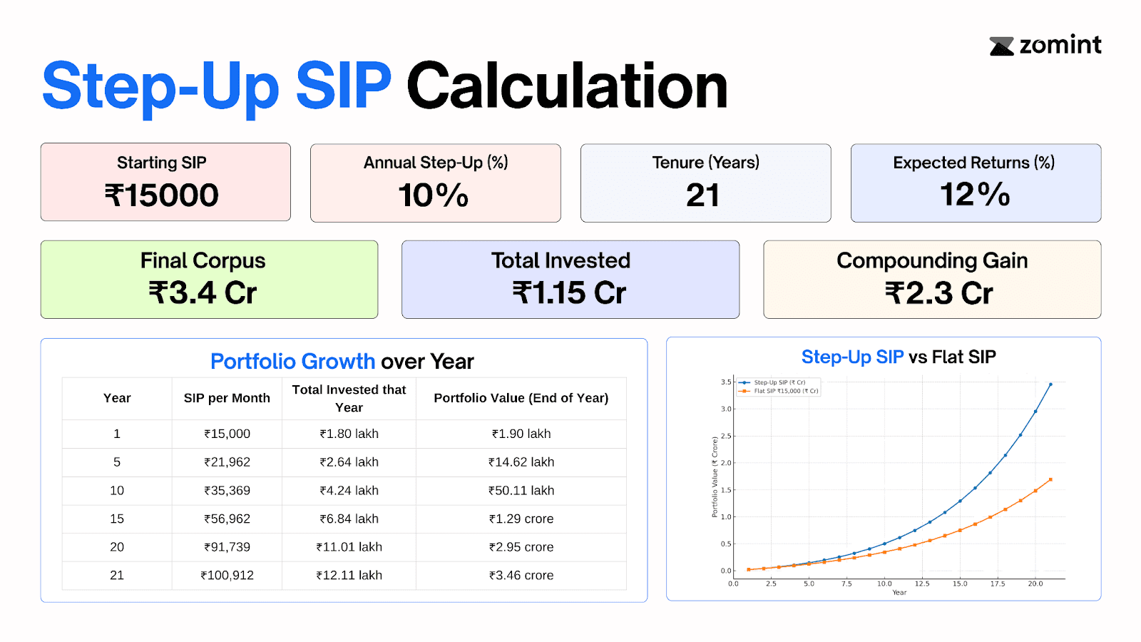 To show you the power of a Step-Up SIP, let’s look at an example.